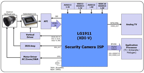 | • On-chip frame memory for 3D noise reduction & digital zoom |